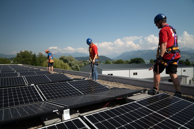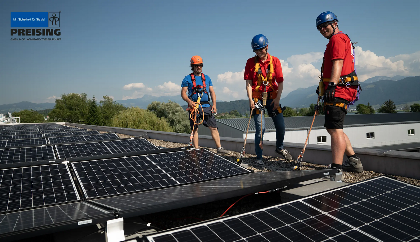 Le système permet de sécuriser jusqu'à trois personnes en même temps. Il est donc idéal pour les équipes d'installation et de maintenance qui travaillent en parallèle sur le toit. Cela permet de travailler efficacement, sans compromettre la sécurité. La capacité de charge du système a été testée et est conforme à toutes les normes applicables aux lignes de vie multi-personnes (y compris CEN/TS 16415).