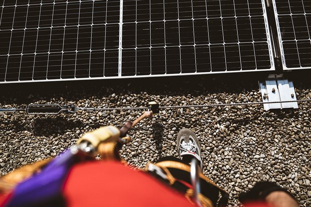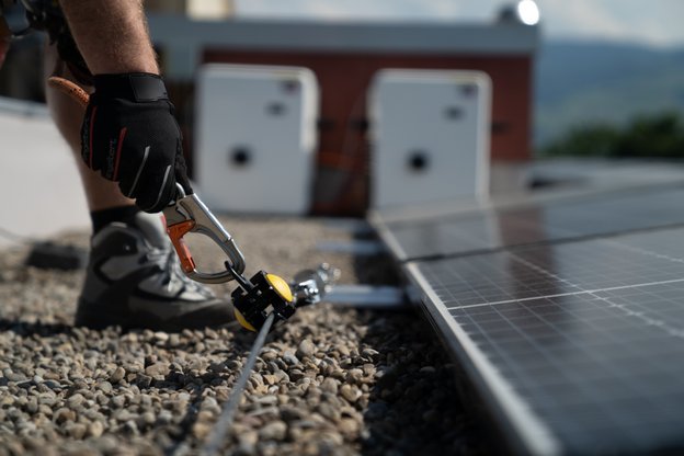 La connexion directe au réseau de modules, associée à l'équipement de protection individuelle contre les chutes (EPI) approprié, offre une liberté de mouvement maximale autour de l'ensemble du système photovoltaïque. Les monteurs peuvent ainsi accéder à la zone à risque de chute sans devoir procéder à des accrochages et décrochages supplémentaires et fastidieux.