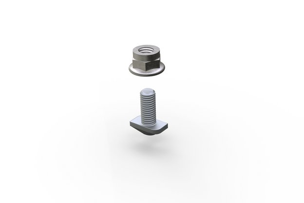 Des vis à tête marteau s'insérant automatiquement dans la rainure sont prémontées sur les supports. Lors du serrage, la tête marteau se place dans la bonne position. Avantage : temps de montage réduit, nombre de composants réduit, assemblages stables.