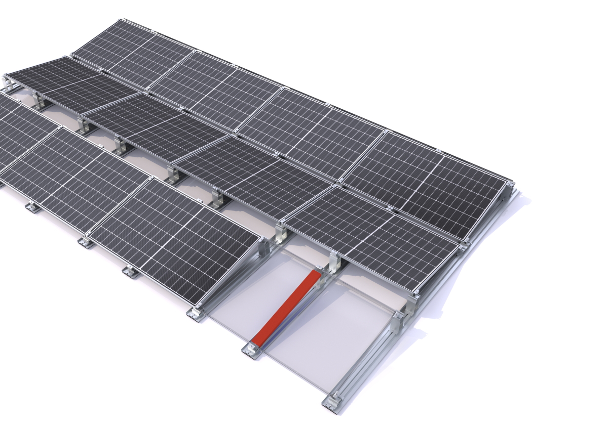 Assure une stabilité supplémentaire grâce à des supports et un serrage sur le module. Avantages : aide à la répartition de la charge, réduction de la pression superficielle sur l'isolation, augmentation de la capacité de charge et de la résistance aux charges de vent et de neige. Avantage en termes de sécurité pour les modules de grande taille et les conditions de toiture difficiles.