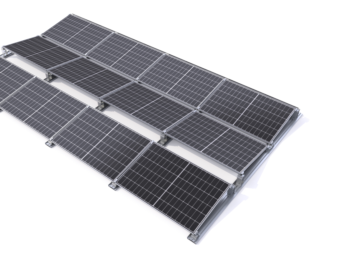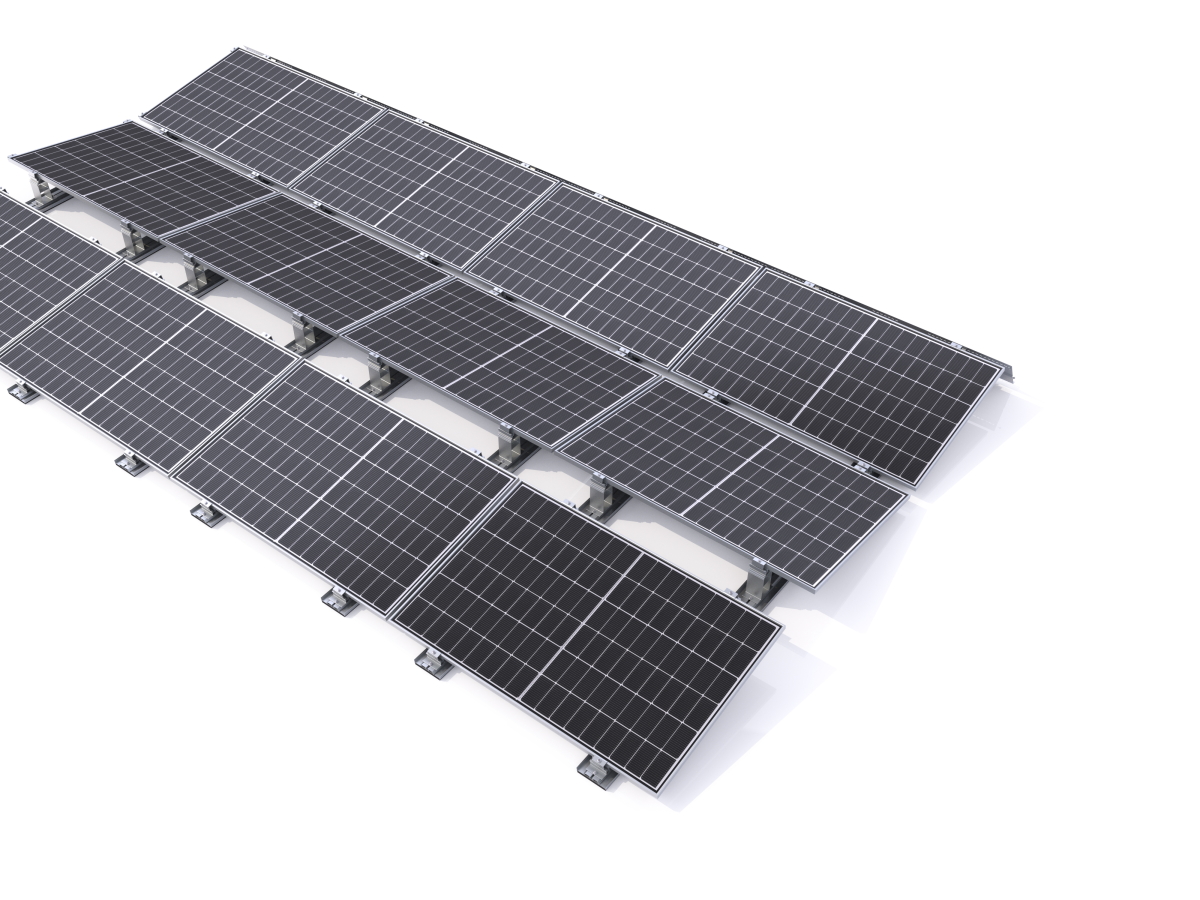 Plus de flexibilité pour les grands modules : notre système de montage aérodynamique pour toits plats a été perfectionné et convient parfaitement aux modules d'une taille maximale de 3 m². Aérodynamiquement optimisé, sûr à long terme – sans aucune perforation du toit.